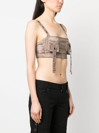 eyelet-detail bandeau top Highlights - Chamoisee - Cotton blend - Washed denim - Bronze-tone hardware - Eyelet detailing - Concealed side zip fastening - Cropped - Two chest flap pockets Imported Composition Cotton 97%, Spandex/Elastane 3% SIZE & FIT Model measurements Height 5 ft 10 in(1.78 m) Bust/Chest 31.5 in(80 cm) Hips 36.2 in(92 cm) Waist 25.6 in(65 cm) FittingInformation Designed for a close fit throughout Made from a midweight stretch fabric, this piece offers elasticity and flexibility when worn This piece fits true to size – take your usual size