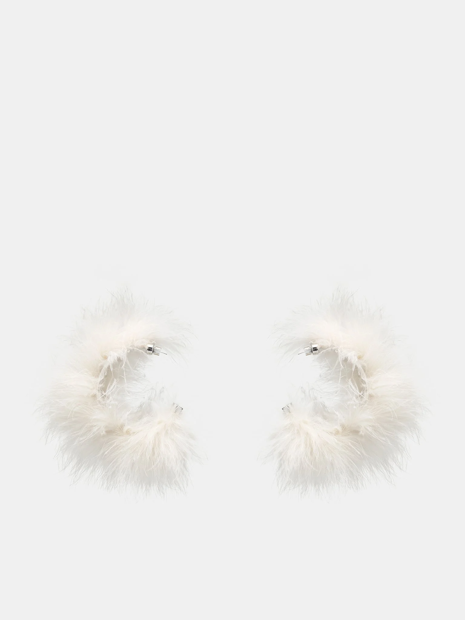 BLUMARINE earrings in white, brass & turkey feather construction, silver-tone brass hardware, feather embellishment, logo engraving, pin-back fastening. Made in Italy 50% Brass 50% Meleagris Feathers One Size