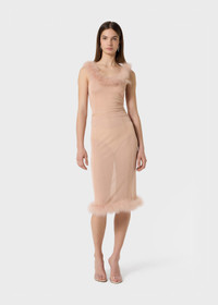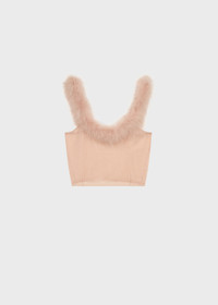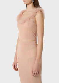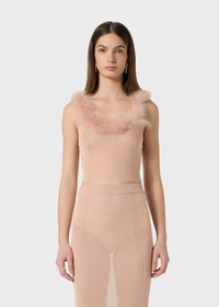 SEE-THROUGH KNIT TOP WITH FEATHER-EDGED NECKLINE COMPOSITION: 76% VI 24% PA - SEE-THROUGH EFFECT KNIT - FEATHER DECORATIONS AT THE NECKLINE - SLIM FIT DETAILS COLORS: PINK