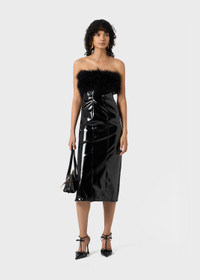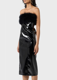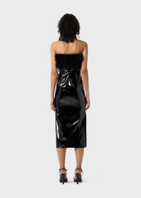 PATENT MIDI DRESS WITH MARABOU FEATHERS