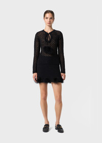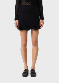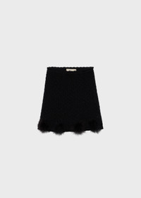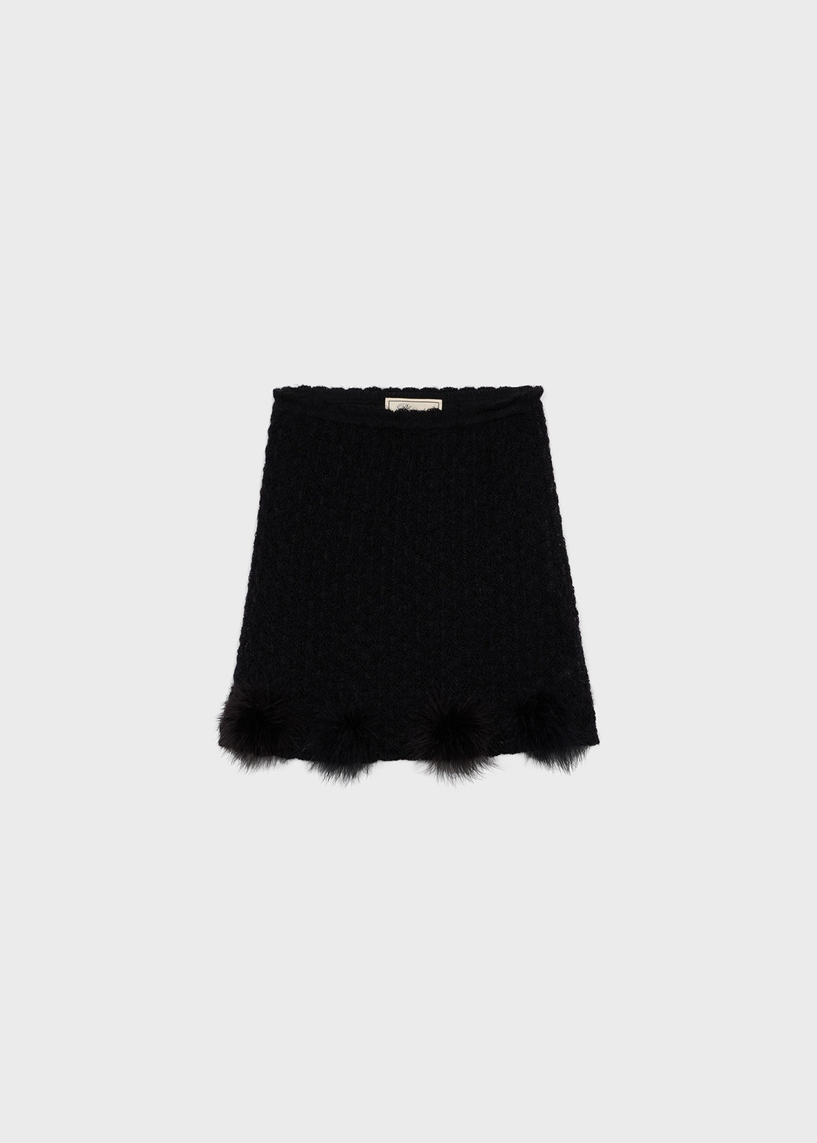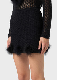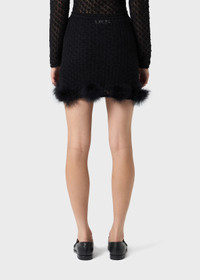 LACE-STITCH MOHAIR-BLEND MINI SKIRT TRIMMED WITH MARABOU FEATHER POM-POMS. COMPOSITION: 50%PA 46%WM 4%WO - MOHAIR BLEND - LACE STITCH TEXTURE - ELASTICATED WAIST - MARABOU FEATHER POM-POMS AT THE HEM - REMOVABLE UNDERSKIRT - MINI LENGTH - TAPERED FIT DETAILS COLORS: BLACK