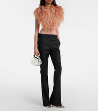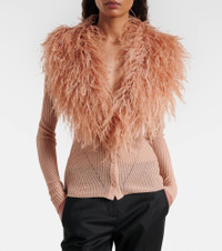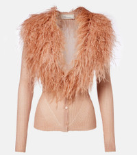 Feather-trimmed ribbed-knit cardigan