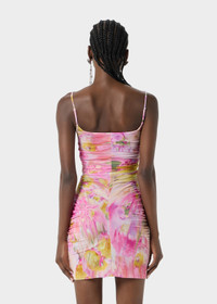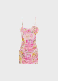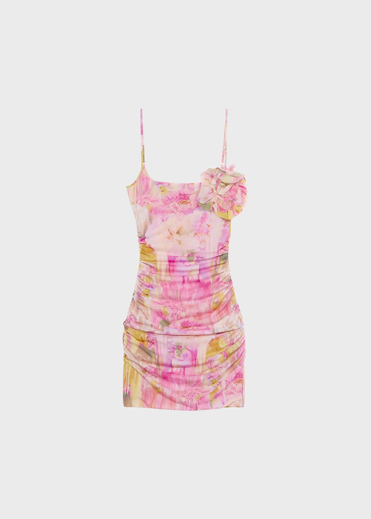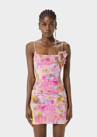 LIQUID FLOWERS PRINT SECOND-SKIN JERSEY MINI DRESS FEATURING A HANDCRAFTED 3D FLOWER AND RUFFLE DETAILING. COMPOSITION: 90%PA 10%EA - SECOND SKIN JERSEY - LIQUID FLOWER PRINT - HANDCRAFTED 3D FLOWER - SHOULDER PADS - STRAIGHT NECKLINE - RUFFLED PATTERN - LOW-CUT BACK - FULLY LINED - MINI LENGTH - SLIM FIT DETAILS COLORS: PINK