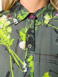floral print shirt Khaki green shirt from Blumarine featuring a classic collar, a front button placket, long sleeves, button cuffs and an all-over floral print. Made in Italy Composition Viscose 100% SIZE & FIT Model measurements Height 5 ft 10 in(1.77 m) Bust/Chest 35.03 in(89 cm) Hips 36.22 in(92 cm) Waist 25.98 in(66 cm) FittingInformation This piece fits true to size. We recommend you get your regular size Cut for a relaxed fit Made with a lightweight fabric Washing instructions Dry Clean Only
