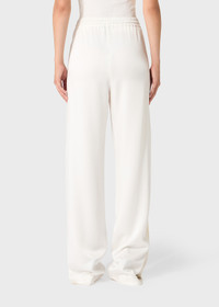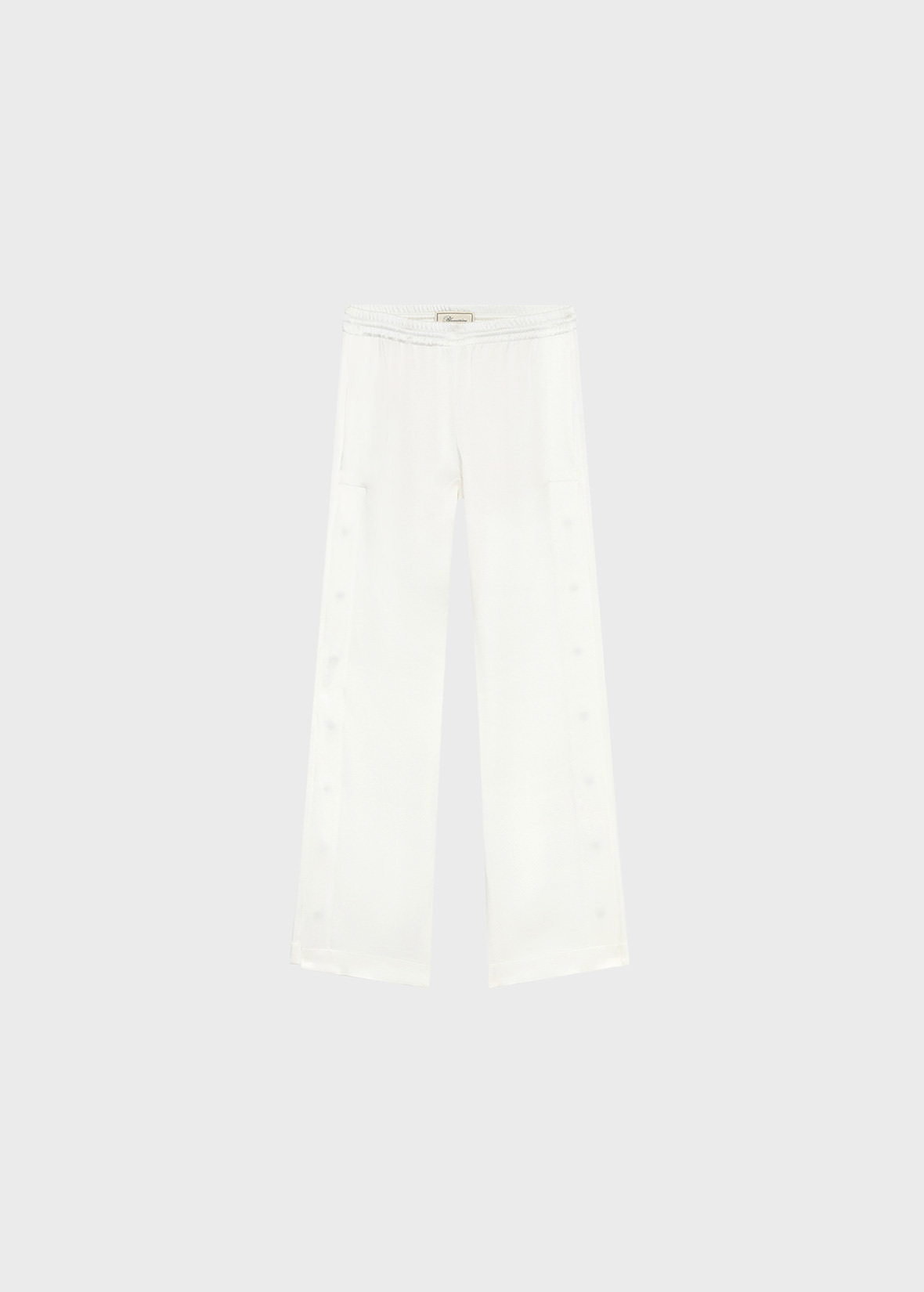 FLUID SATIN PANTS WITH AN ELASTIC WAISTBAND, SIDE POCKETS, PUDDLE HEM, AND SIDE SLITS. COMPOSITION: 71% ACETATE 27% VISCOSE 2% ELASTANE - SATIN - ELASTICATED WAIST - POCKETS AT THE HIPS - PUDDLE BOTTOM WITH SIDE SLITS - SOFT RELAXED FIT - REGULAR FIT DETAILS COLORS: WHITE