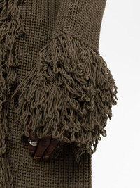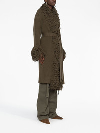 fringe belted coat This Blumarine item combines the aesthetic of a cardigan with the elements of a coat. Defined by its texture fringed edge, it's crafted from pure virgin wool. Highlights - Olive green - Virgin wool - Knitted construction - Fringed edge - Open front - Long sleeves - Straight hem Made in Italy Composition Virgin Wool 100% Washing instructions Dry Clean Only