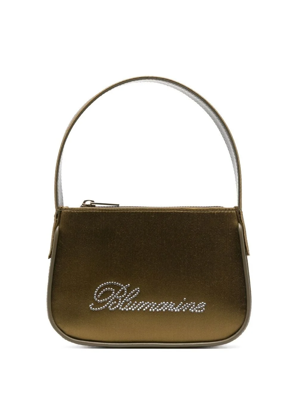 rhinestone embellished satin mini bag Highlights - Olive green - Cotton - Satin finish - Gem-logo detailing - Single top handle - Top zip fastening - Main compartment - Internal logo patch Made in Italy Composition Lining: Cotton 100% Outer: Viscose 72%, Silk 28% SIZE & FIT Model measurements Height 5 ft 10 in(1.79 m) Bust/Chest 32.67 in(83 cm) Hips 34.25 in(87 cm) Waist 24.4 in(62 cm) Measurement DEPTH 1.96 in(5 cm) HANDLE 5.11 in(13 cm) HEIGHT 5.11 in(13 cm) WIDTH 7.48 in(19 cm)
