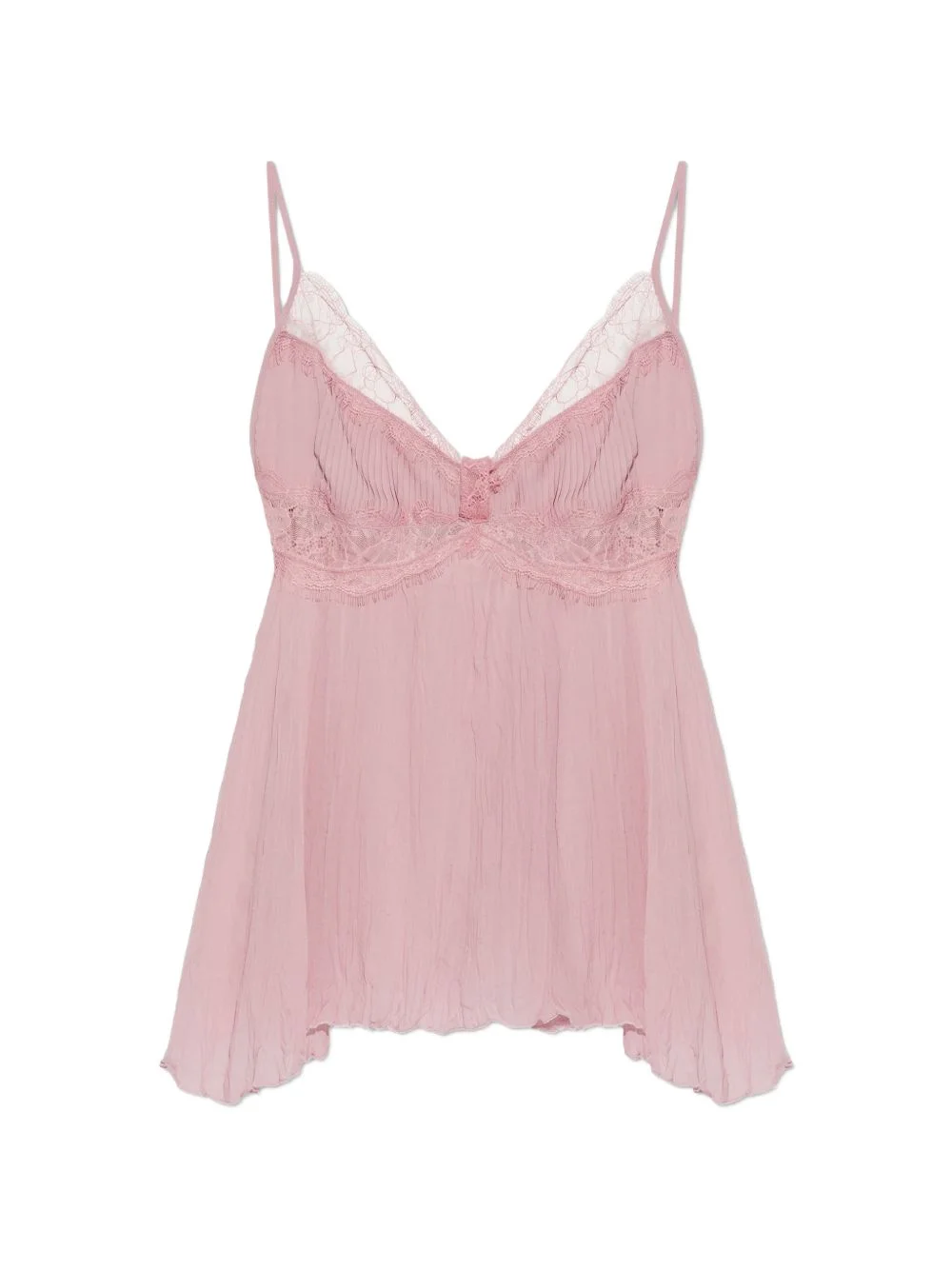 Georgette lace-pannels V-neck top Highlights - Pink - Lace detail - V-neck - Pleated detail - Camisole straps - Raw hem Made in Italy Composition Outer: Viscose 100% Washing instructions Machine Wash
