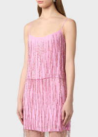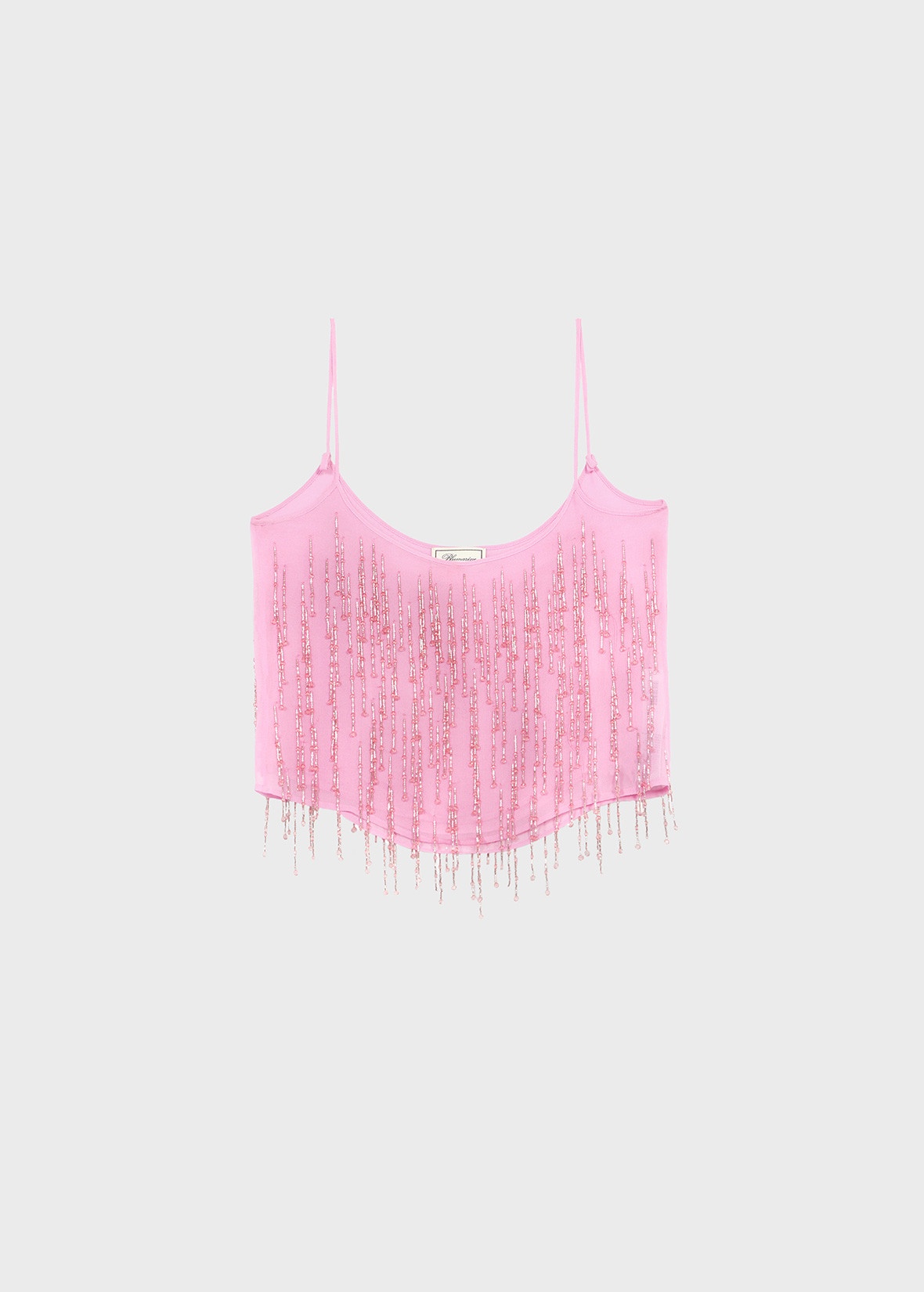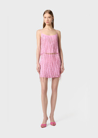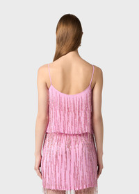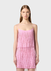 TONE-ON-TONE EMBROIDERY WITH FACETED BEADS AND STONES FOR THIS VISCOSE GEORGETTE TOP WITH THIN STRAPS AND A PLUNGE NECKLINE AT BACK COMPOSITION: 100% VISCOSE EMBROIDERY 100% VE LINING: 100% VISCOSE - VISCOSE GEORGETTE - HAND EMBROIDERY WITH FACETED BEAD AND RHINESTONE FRINGES - SPAGHETTI STRAPS - ROUND NECKLINE AT BACK AND FRONT, INTERIOR LINING - REGULAR FIT DETAILS COLORS: PINK