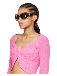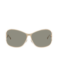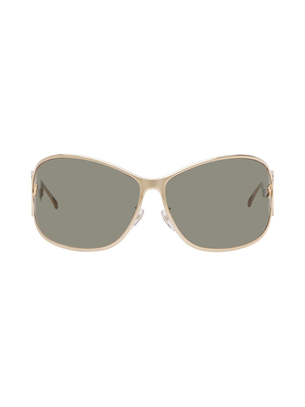 Wraparound oval metal-frame sunglasses in gold tone. · Gray lenses · Adjustable rubber nose pads · Logo hardware at temples · Lens at arms · Logo engraved at temple tips · Includes pouch Supplier color: Gold