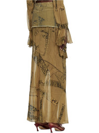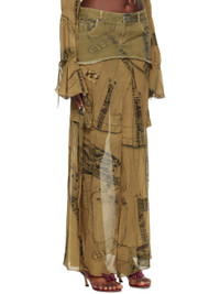 Paneled stretch denim and semi-sheer viscose georgette skirt. Graphic pattern printed throughout. · Layered construction · Belt loops · Three-pocket styling · Zip-fly · Vent at front flared hem · Cargo pocket at outseams · Logo embroidered at back waistband · Logo-engraved silver-tone hardware Supplier color: Taupe grey/Nero
