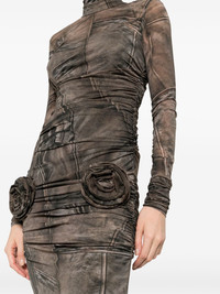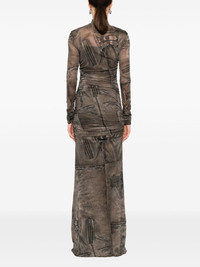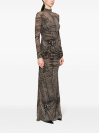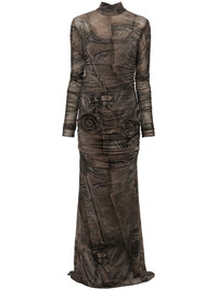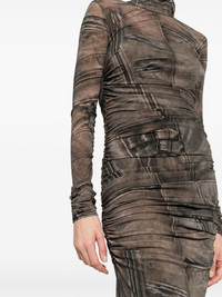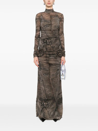 graphic-print ruched dress Highlights - Green, bronze-tone, multicolour - Stretch-design - All-over graphic print - Ruched detailing - High neck - Removable floral applique - Long sleeves - Floor-length - Straight hem - Detachable slip dress - Neck button fastening to the rear Made in Italy Composition Lining: Polyamide 75%, Elastane 25% Outer: Polyamide 90%, Elastane 10% SIZE & FIT Model measurements Height 5 ft 9 in(1.76 m) Bust/Chest 33.07 in(84 cm) Hips 34.64 in(88 cm) Waist 25.59 in(65 cm) FittingInformation Designed for a close fit throughout The detachable slip sits just away from the body, offering a close yet comfortable fit Made from a midweight stretch fabric, this piece offers elasticity and flexibility when worn This piece fits true to size – take your usual size Washing instructions Machine Wash