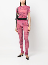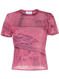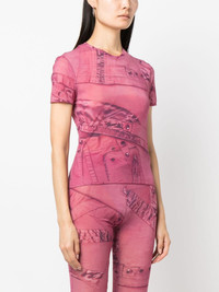 graphic-print semi-sheer T-shirt Highlights - Hot pink - All-over graphic print - Semi-sheer construction - Stretch-design - Round neck - Short sleeves - Straight hem Composition Polyamide 90%, Elastane 10% SIZE & FIT Model measurements Height 5 ft 10 in(1.78 m) Bust/Chest 30.7 in(78 cm) Hips 36.2 in(92 cm) Waist 25.6 in(65 cm) FittingInformation Designed for a close fit throughout Made from a lightweight stretch fabric, this piece offers elasticity and flexibility when worn This piece fits true to size – take your usual size