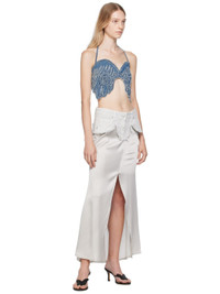 Non-stretch denim and acetate- and silk-blend satin skirt. · Layered construction · Belt loops · Five-pocket styling · Zip-fly · Frayed edge at waist · Slit at front hem · Logo patch at back waistband · Logo-engraved silver-tone hardware Supplier color: Ice gray Body 1: 55% acetate, 45% silk. Body 2: 100% cotton. Made in Albania 232901F093001