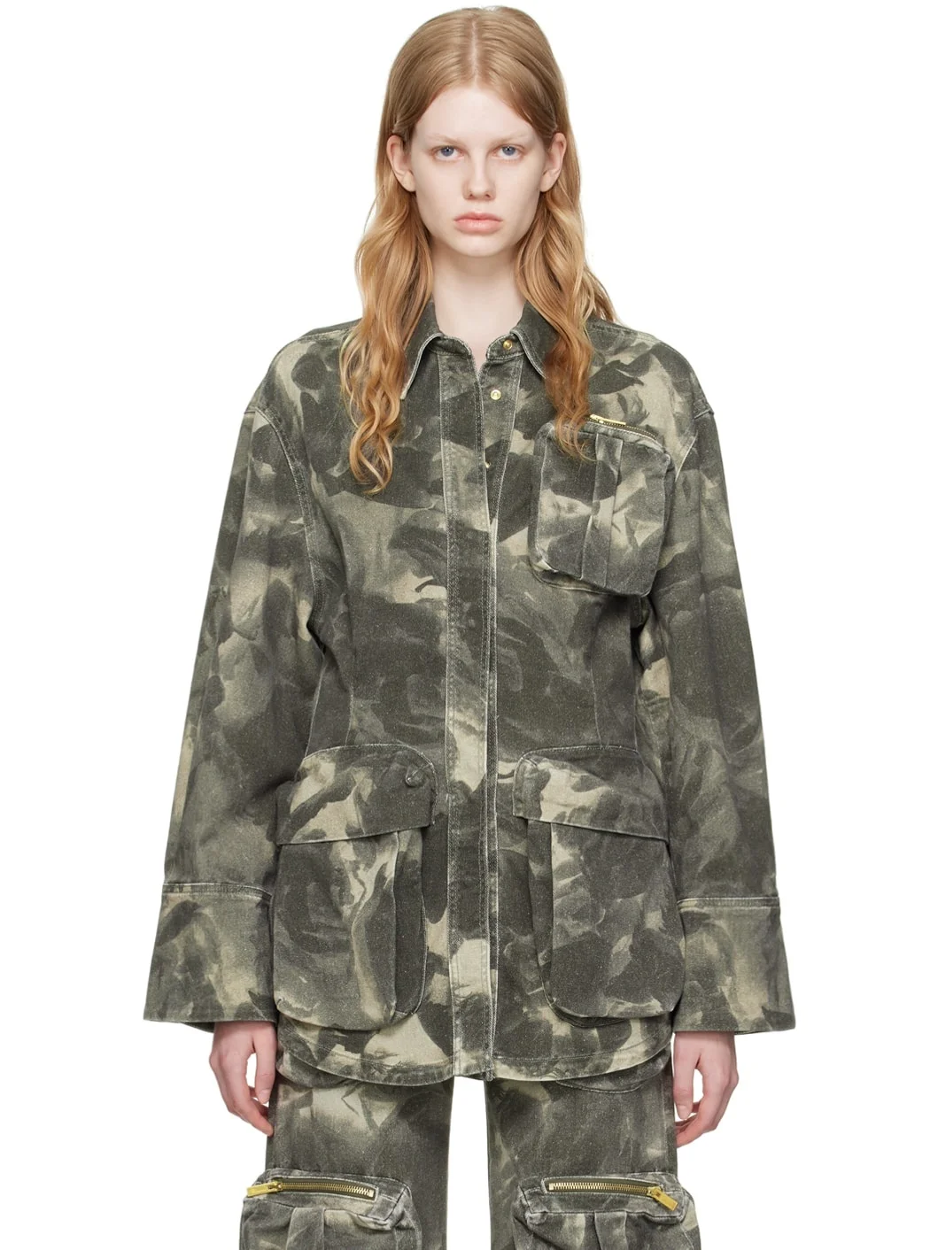 Stretch denim jacket. Camouflage pattern printed throughout. · Spread collar · Concealed press-stud closure · Zip pocket at chest · Cargo pockets · Concealed press-stud fastening at cuffs · Logo hardware at back yoke Supplier color: Aloe/Corteccia 98% cotton, 2% elastane. Made in Albania 231901F060001