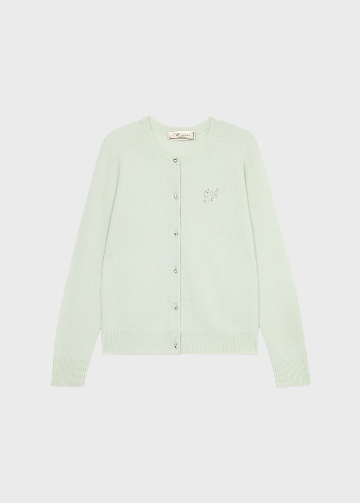 PURE CASHMERE CREW NECK CARDIGAN WITH JEWEL BUTTONS, B MONOGRAM IN RHINESTONES, AND RIBBED EDGES. COMPOSITION: YARN 100% WS - PURE CASHMERE - EMBROIDERY RHINESTONE B MONOGRAM LOGO - CREW NECKLINE - JEWEL BUTTON CLOSURE - LONG SLEEVES - RIBBED PROFILES - REGULAR FIT DETAILS COLORS: GREEN
