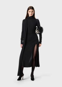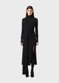 MIDI DRESS IN VISCOSE JERSEY WITH SCARF, RUCHING DETAIL ON THE SIDES, SIDE SPLIT, CUT-OUT AT THE BACK. COMPOSITION: 100%VIS - VISCOSE JERSEY - SCARF - RUCHING DETAIL AT WAIST - LONG SLEEVES - SIDE SPLIT - CUT-OUT AT THE BACK - ZIP CLOSURE AT THE BACK - MIDI LENGTH - REGULAR FIT DETAILS COLORS: BLACK