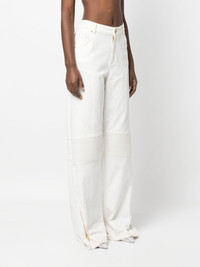 high-rise wide-leg jeans high-rise wide-leg jeans from BLUMARINE featuring white, stretch-cotton, denim, ribbed-knee detailing, belt loops, high waist, front button and zip fastening, classic five pockets, ankle zips and wide leg. Composition Lining: Cotton 100% Outer: Cotton 98%, Elastane 2% SIZE & FIT Model measurements Height 5 ft 10 in(1.77 m) Bust/Chest 30.3 in(77 cm) Hips 35 in(89 cm) Waist 22.8 in(58 cm) FittingInformation This piece fits true to size. We recommend you get your regular size Designed to be fitted at the waist and hips, loose over the leg Made with a mid-weight stretch fabric