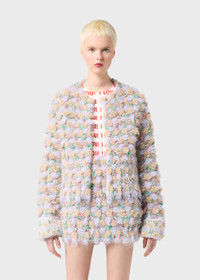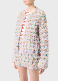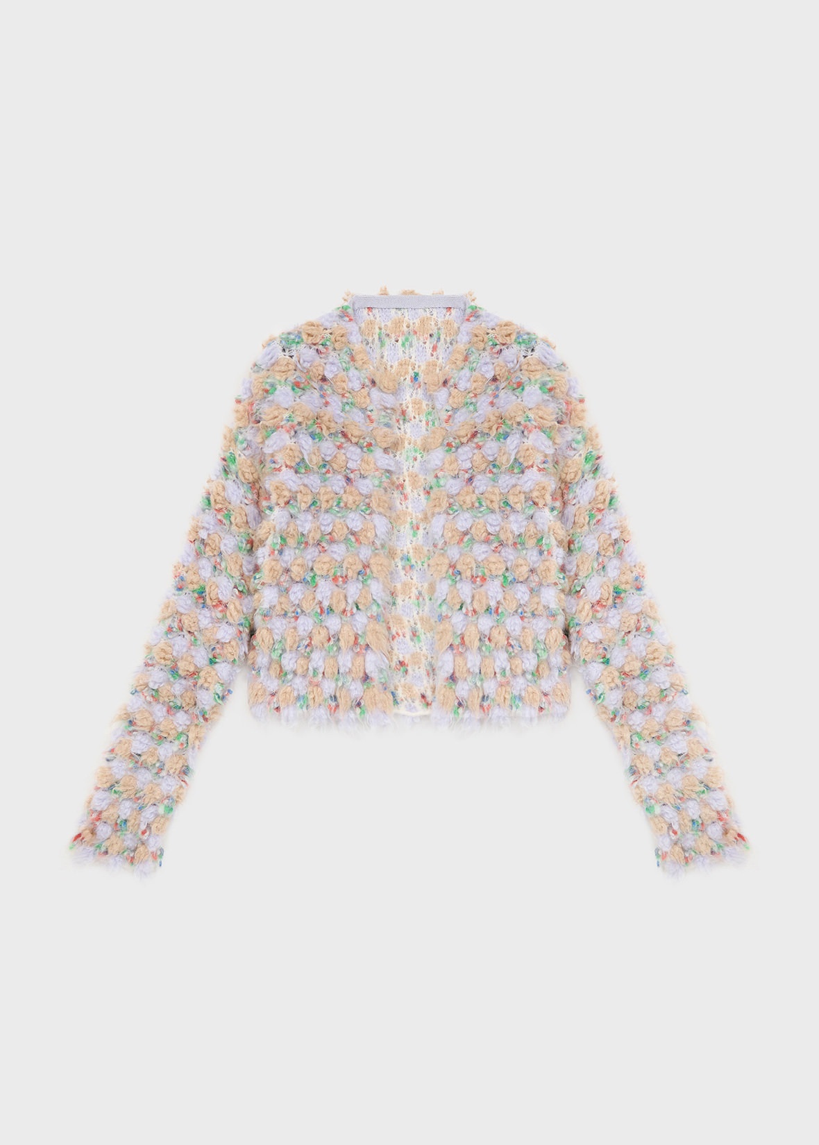 MULTICOLOR BOUCLE KNIT JACKET WITH FUR-LIKE TEXTURE, ROUND NECKLINE, AND CLOSE-SET HOOK CLOSURE. COMPOSITION: 60%CO 40%PA - MULTICOLOR BOUCLE KNIT - ROUND NECKLINE - LONG SLEEVES - HOOK CLOSURE - REGULAR FIT DETAILS COLORS: MULTICOLOR