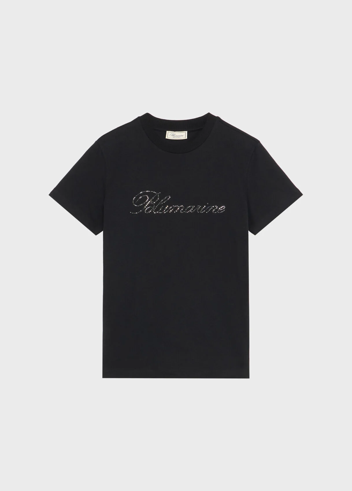 Short sleeve stretch cotton jersey t-shirt with blumarine logo embroidered in rhinestones. - Stretch cotton jersey - Embroidery glass rhinestone blumarine logo detailing - Round neckline - Short sleeves - Regular fit - Made in Italy DETAILS To find the correct size for you, please consult the Size Guide. Composition: Main fabric: 100% cotton; Embroidery: 50% aluminium, 50% glass Hand wash - room temperature; Do not bleach; Do not tumble dry; Iron at low temperature - no steam; Do not dry clean; Hang flat in shade; Do not leave in water; Wash inside out; Do not twist or squeeze; Iron inside out; Do not iron trims; Iron by interposing cloth