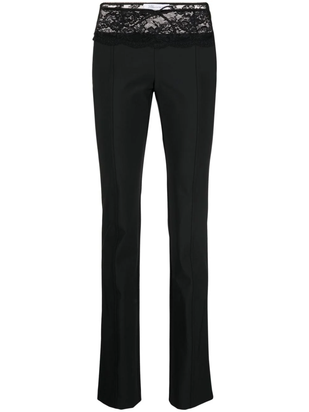 lace-detail tapered trousers Highlights - Black - Stretch-design - Lace detailing - Elasticated waistband - Tapered leg - Straight hem Made in Italy Composition Outer: Polyester 95%, Elastane 5% Polyester 50%, Polyamide 50% SIZE & FIT Model measurements Height 5 ft 10 in(1.77 m) Bust/Chest 31.49 in(80 cm) Hips 35.43 in(90 cm) Waist 25.19 in(64 cm) FittingInformation Designed for a slim fit, these trousers offer a close fit at the waist, allowing a comfortable close fit and some movement over the leg Made from a midweight stretch fabric, this piece offers elasticity and flexibility when worn This piece fits true to size – take your usual size Measurement FRONT RISE 8.5 in(21.6 cm) INSIDE LEG 34.01 in(86.4 cm) BACK RISE 10 in(25.4 cm) HIPS 30.98 in(78.7 cm) Hem Width 12.99 in(33 cm) WAIST 25 in(63.5 cm) Washing instructions Machine Wash
