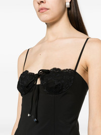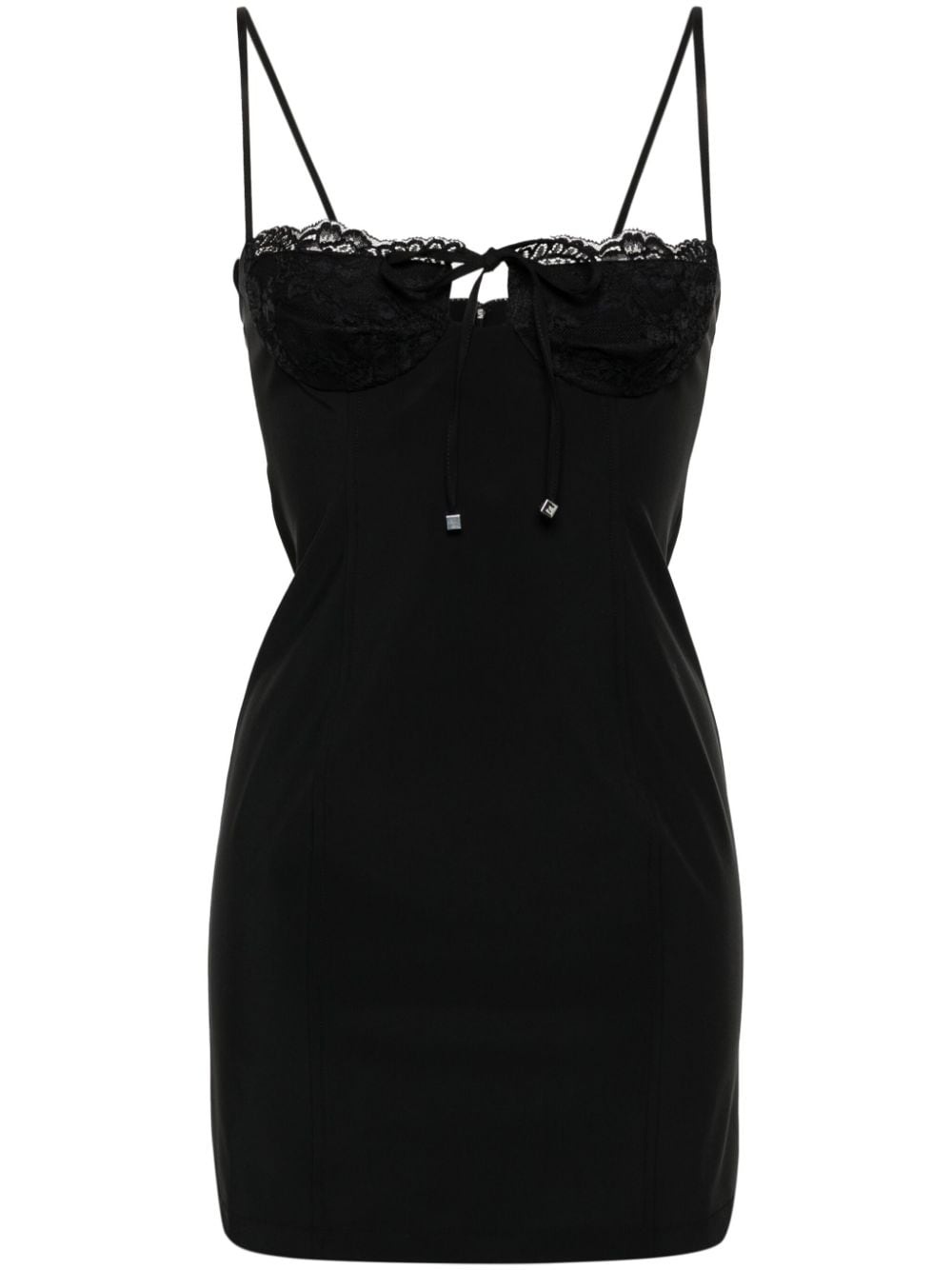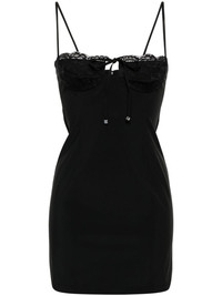lace-embellished minidress Highlights - Black - Floral-lace detailing - Cut-out detailing - Square neck - Front tie fastening - Concealed rear zip fastening - Spaghetti straps - Underwire cup - Thigh-length - Straight hem Composition Polyester 95%, Elastane 5% SIZE & FIT Model measurements Height 5 ft 11 in(1.8 m) Bust/Chest 31.5 in(80 cm) Hips 35 in(89 cm) Waist 24.4 in(62 cm) FittingInformation Designed for a close fit throughout Made from a midweight stretch fabric, this piece offers elasticity and flexibility when worn This piece fits true to size – take your usual size