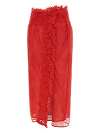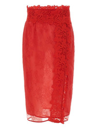 lace floral embroidered skirt Highlights - Red - Lace fabric - Floral embroidery - Side opening - Button closure - Waistband lace detail Made in Italy Composition Polyamide 50%, Viscose 50% Washing instructions Read Manufacturer Guidelines