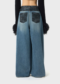SUPERWIDE-LEG JEANS IN STONE-WASHED DENIM WITH LACE DETAILS AT THE WAIST AND ON THE BACK POCKETS. COMPOSITION: 100%CO - STONE-WASHED DENIM - VALENCIENNES LACE - SUPERWIDE LEG - LACE DETAILS AT WAIST, ZIPPER, AND BACK POCKETS - FIVE-POCKET STYLE - ZIPPER AND BUTTON CLOSURE - PUDDLE BOTTOM - B MONOGRAM LABEL AT BACK - REGULAR FIT DETAILS COLORS: BLUE