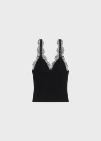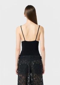 Ribbed viscose tank top with raw-edge lace decorations on the shoulders and decollete. - Ribbed viscose - Raw-edge lace decorations on the shoulders and decollete - Sleeveless cut - Shoulder pads - V-neck - Low-cut back - Body-hugging fit DETAILS To find the correct size for you, please consult the Size Guide. Composition: Yarn 1: 72% viscose, 28% polyester; Lace: 100% polyamide Hand wash - room temperature; Do not bleach; Do not tumble dry; Iron at low temperature - no steam; Dry clean with tetrachloroethylene or hydrocarbons - gentle cycle; Dry flat in shade; Wash inside out; Iron inside out