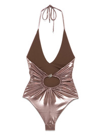 laminated swimsuit Highlights - Foliage brown - Halterneck tie fastening - Logo plaque - Cut-out detailing - Be mindful to try on swimwear over your own garments. Made in Italy Composition Outer: Polyester 78%, Elastane 22% Lining: Polyamide 85%, Elastane 15%