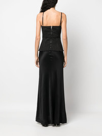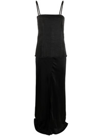 layered sleeveless maxi dress Highlights - Black - Satin finish - Layered design - Square neck - Rear zip fastening - Spaghetti straps - Floor-length - Straight hem Imported Composition Cotton 100%, Acetate 55%, Silk 45% SIZE & FIT Model measurements Height 5 ft 10 in(1.79 m) Bust/Chest 33.07 in(84 cm) Hips 35.82 in(91 cm) Waist 24.01 in(61 cm) FittingInformation Designed for a slim fit that sits just away from the body offering a close yet comfortable fit The adjustable shoulder straps allow for a preferred fit when worn Made from a midweight non-stretch fabric This piece fits true to size – take your usual size Washing instructions Dry Clean Only