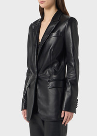 Straight-cut jacket in plonge leather with notched lapels, flap pockets, and single-button closure. - Plonge leather - Straight line - Collar - Lapels - Welt pocket - Flap pockets - Long sleeves - Buttoned cuffs - One-button closure - Fully lined - Regular fit DETAILS To find the correct size for you, please consult the Size Guide. Composition: Main lining: 100% polyester Do not wash; Do not bleach; Do not tumble dry; Do not iron; Do not dry clean; Do not expose to direct heat; Professional fur clean only