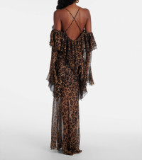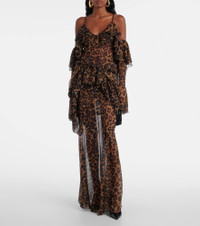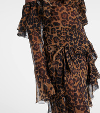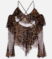 Leopard-print draped silk top