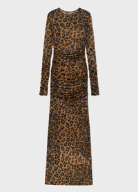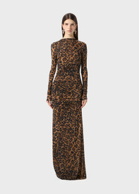 Gathered detail on the sides and sleeves for the long second-skin jersey dress with animal print. - Second-skin jersey - Animal print - Round neckline - Gathered detail on the sides - Long sleeves with gathering at the cuffs - Removable slip - Floor length - Body-hugging fit - Made in Italy DETAILS To find the correct size for you, please consult the Size Guide. Composition: Main fabric: 90% polyamide, 10% elastane Slip: 75% polyamide, 25% elastane Wash delicate cycle max 30°C; Do not bleach; Do not tumble dry; Iron at low temperature - no steam; Dry clean with tetrachloroethylene or hydrocarbons - gentle cycle; Use a mild detergent; Wash inside out; Gentle spin; Do not iron lining; Iron inside out