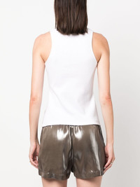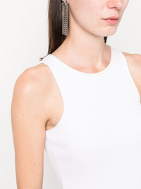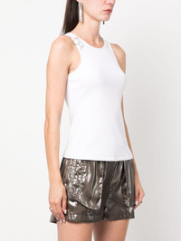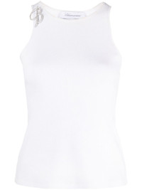 brooch-detail tank top Highlights - Optical white - Stretch-cotton - Fine ribbed - Brooch detail - Rhinestone embellishment - Round neck - Sleeveless - Straight hem Imported Composition Cotton 95%, Elastane 5% SIZE & FIT Model measurements Height 5 ft 10 in(1.78 m) Bust/Chest 33.46 in(85 cm) Hips 36.22 in(92 cm) Waist 23.22 in(59 cm) FittingInformation Designed for a slim fit that sits just away from the body offering a close yet comfortable fit Made from a midweight stretch fabric, this piece offers elasticity and flexibility when worn This piece fits true to size – take your usual size Washing instructions Machine Wash