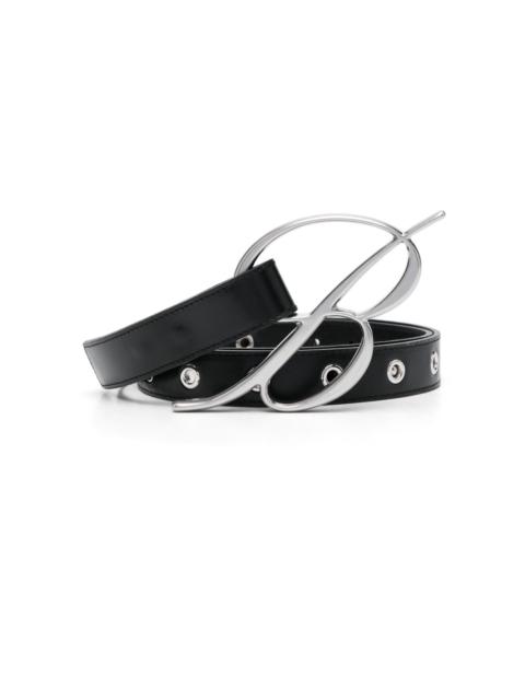 logo-buckle leather belt Highlights - Black - Calf leather - Logo buckle fastening - Silver-tone hardware - Buckle fastening - Punched holes - Adjustable fit Made in Italy Composition Calf Leather 100%, zamac 100%, Brass 100% SIZE & FIT Measurement Maximum Length 25.59 in(65 cm) Minimum Length 27.16 in(69 cm) WIDTH 0.98 in(2.5 cm)