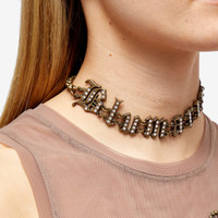 Chunky 90s and Y2K necklaces are back in fashion according to Blumarine and this eye-catching logo choker. This bronze-tone design is studded with gem detailing to spell out the luxury Italian brand’s name across the neck in gothic-style font - promising to add plenty of edge to the everyday. - Metal Construction - Clasp Closure