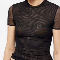 Blumarine’s logo is one we always want to be sporting, with its connotations of excellent Italian craftsmanship - and this mesh tee is the perfect way to do just that. Here, the luxe label reimagines the cursive script with a bejewelled design, making it a sparkling addition to any look. - 82% Nylon, 18% Elastane - Applique Branding