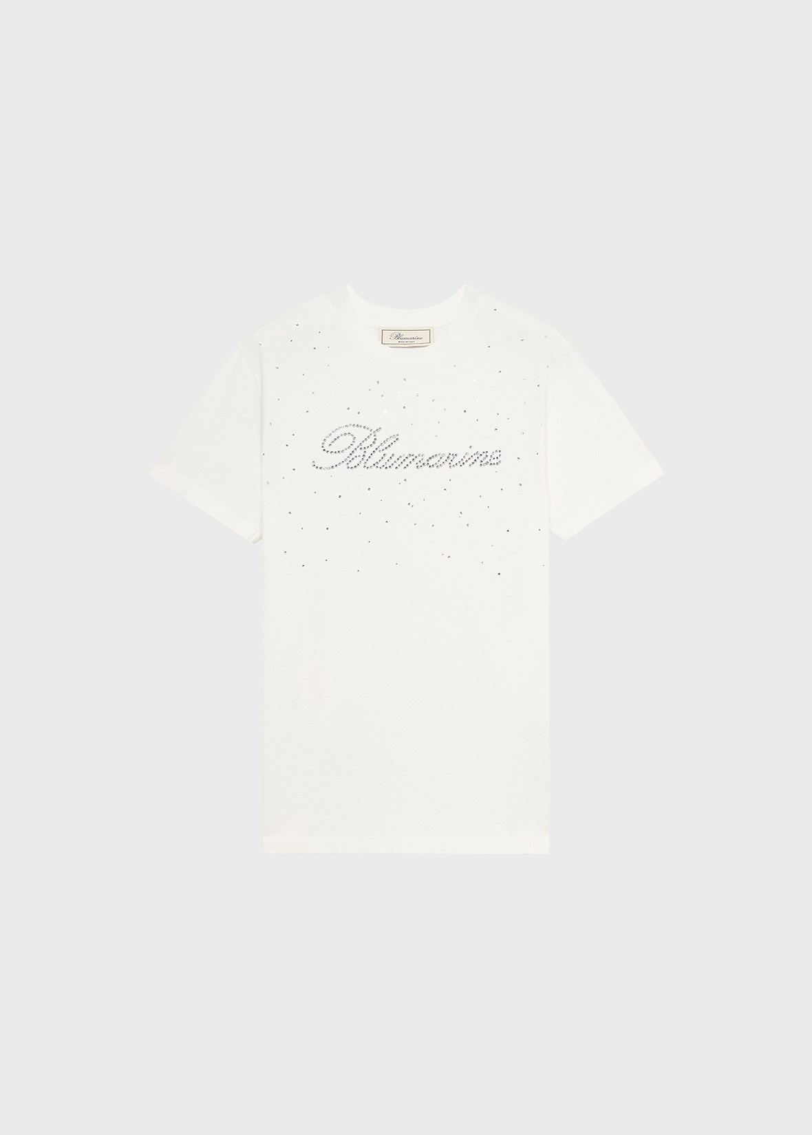 COTTON JERSEY T-SHIRT WITH BLUMARINE LOGO IN GLASS RHINESTONES. COMPOSITION:100%CO - JERSEY COTTON - BLUMARINE LOGO IN GLASS RHINESTONES, ROUND NECKLINE - SHORT SLEEVES - REGULAR FIT DETAILS COLORS: WHITE