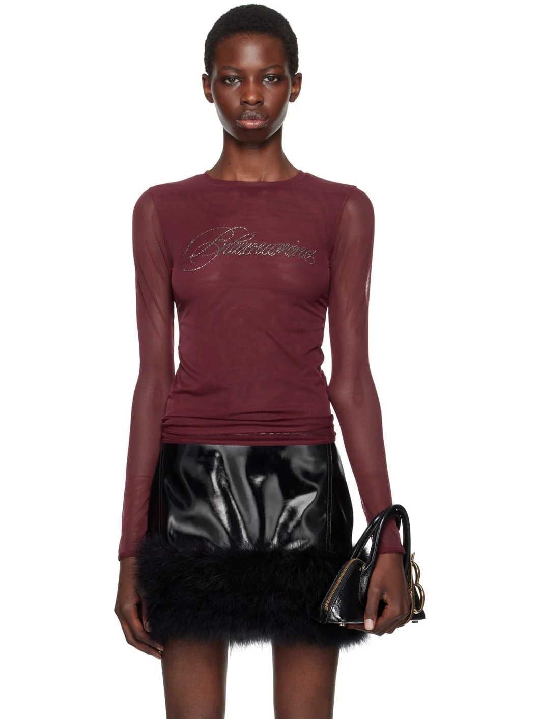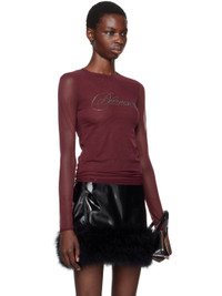 Semi-sheer double-faced stretch nylon mesh T-shirt. · Crewneck · Crystal-cut logo at chest Supplier color: Burgundy