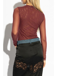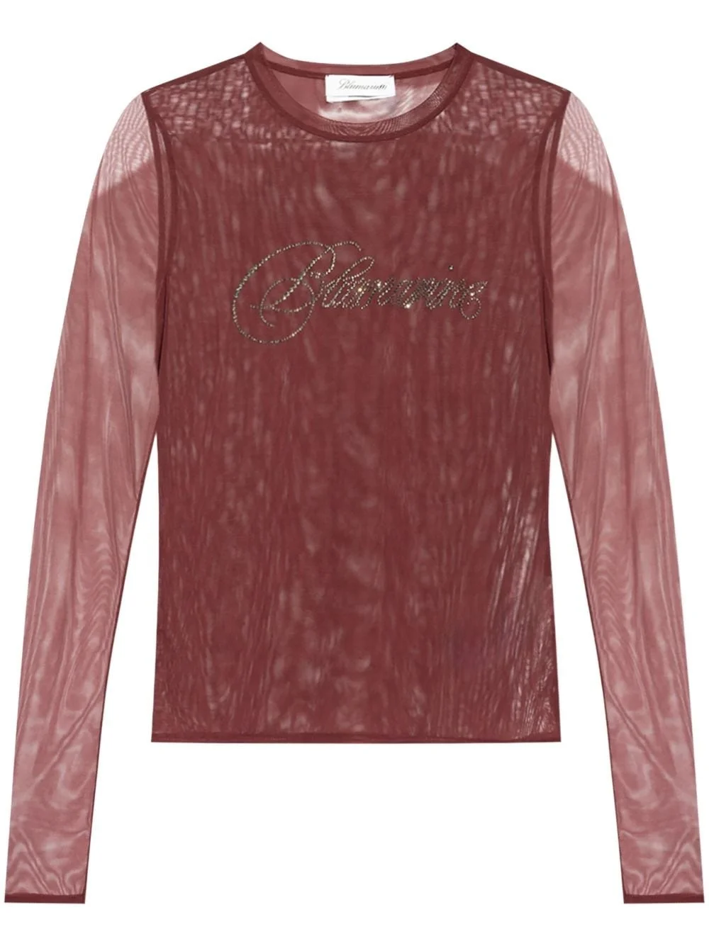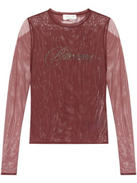 logo-embellished top Highlights - Burgundy - Mesh design - Rhinestone logo embellishment - Crew neck - Long sheer sleeves - Straight hem Made in Italy Composition Polyamide 82%, Spandex/Elastane 18% SIZE & FIT FittingInformation Designed for a close fit throughout Made from a lightweight stretch fabric, this piece offers elasticity and flexibility when worn