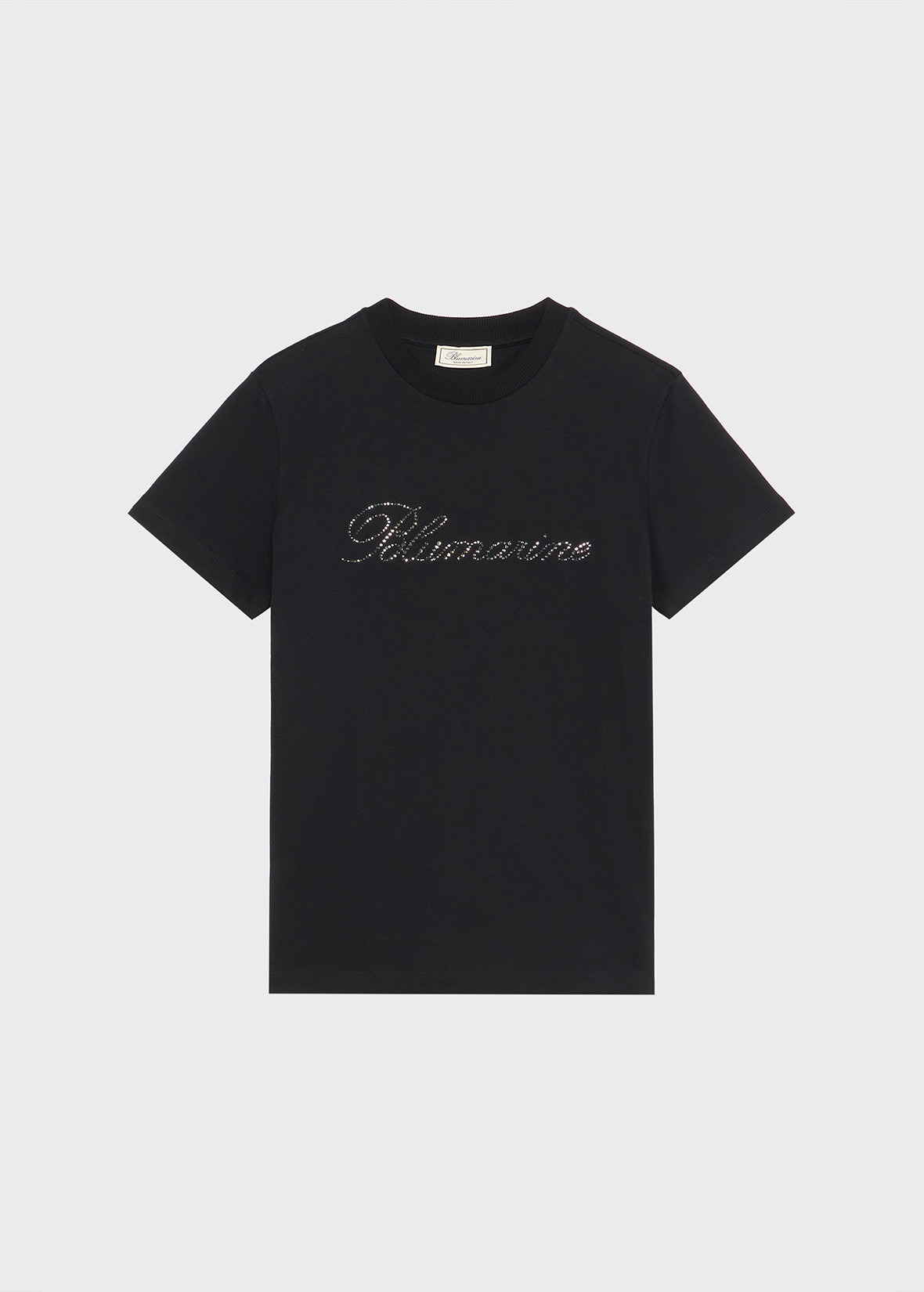 SHORT SLEEVE STRETCH COTTON JERSEY T-SHIRT WITH BLUMARINE LOGO EMBROIDERED IN RHINESTONES. COMPOSITION: 100%CO - STRETCH COTTON JERSEY - EMBROIDERY GLASS RHINESTONE BLUMARINE LOGO DETAILING - ROUND NECKLINE - SHORT SLEEVES - REGULAR FIT DETAILS COLORS: BLACK