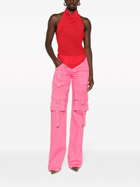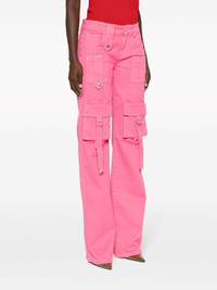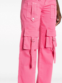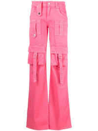 logo-patch flared cargo jeans An unmistakable take on Blumarine's playful aesthetic, these low-rise trousers are enhanced by silver-tone hardware. In bold flamingo pink, they fall into a flared cargo style. Highlights - Flamingo pink - Stretch-cotton - Denim - Logo patch to the rear - Low-rise - Concealed fly and button fastening - Classic five pockets - Multiple cargo pockets - Belt loops - Flared Imported Composition Cotton 98%, Spandex/Elastane 2% SIZE & FIT Model measurements Height 5 ft 9 in(1.76 m) Bust/Chest 32.3 in(82 cm) Hips 34.6 in(88 cm) Waist 23.6 in(60 cm) FittingInformation Designed for a straight-leg fit, these jeans allow for a close fit at the waist and an unrestricted and comfortable fit over the leg Constructed from stretch denim, this piece offers a stretch fit with durability This piece fits true to size – take your usual size