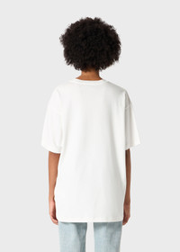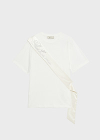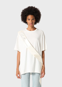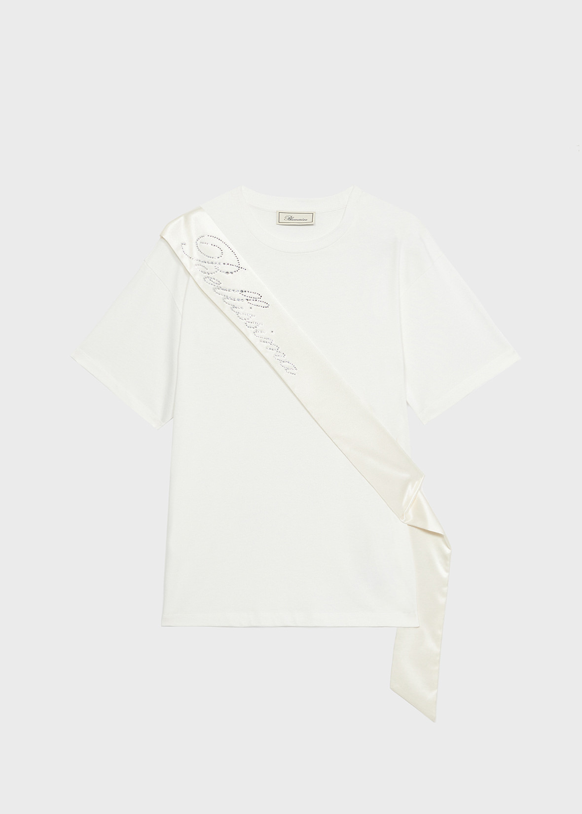 OVERSIZED COTTON JERSEY T-SHIRT WITH A DIAGONAL SATIN BAND EMBROIDERED WITH “BELLISSIMA” IN RHINESTONES. COMPOSITION: 100% COTTON - COTTON JERSEY - SATIN BAND EMBROIDERED WITH “BELLISSIMA” IN RHINESTONES - ROUND NECKLINE - SHORT SLEEVES - OVERSIZED FIT DETAILS COLORS: WHITE