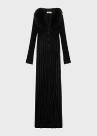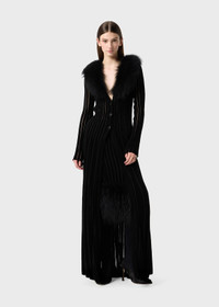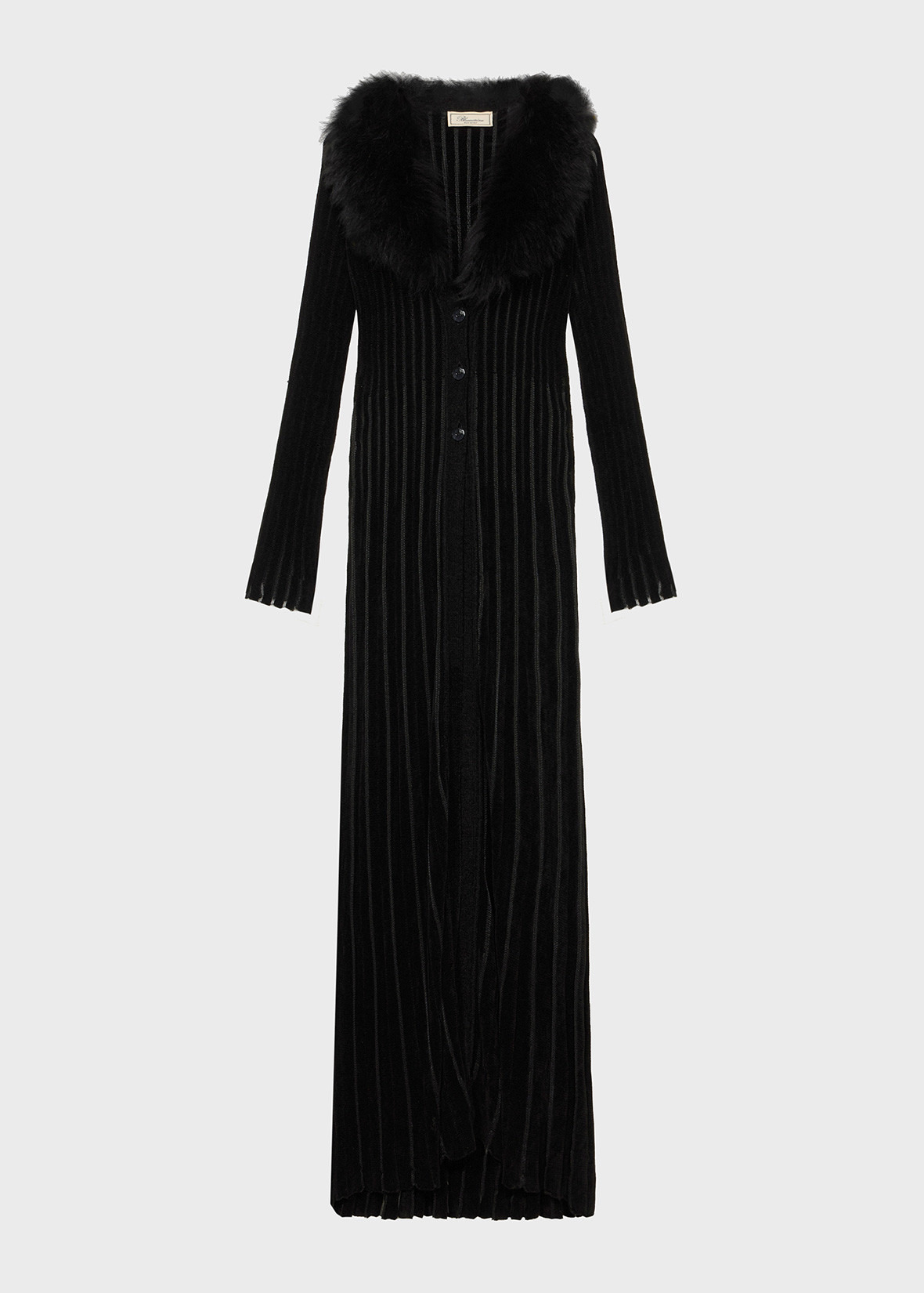 LONG CARDIGAN IN COMPOSITION: SEE-THROUGH CORDUROY VELVET WITH FUR COLLAR. - COMPOSITION: SEE-THROUGH VELVET WITH RIBBED PATTERN - FUR COLLAR - V-NECKLINE - LONG SLEEVES - BUTTON CLOSURE - ANKLE LENGTH - REGULAR FIT DETAILS COLORS: BLACK