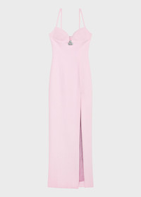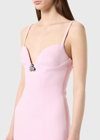 long dress in double crepe with heart neckline, metal rose detail, deep side slit. - Double crepe - Shaped silhouette - Metal flower application - Heart neckline - Sleeveless - Shoulder straps - Side slit - Back neckline - Zip closure at the back - Inner lining - Ankle length - Regular fit - Made in Italy DETAILS To find the correct size for you, please consult the Size Guide. Composition: Main fabric: 95% polyester, 5% elastane; Main lining: 100% polyester Do not wash; Do not bleach; Do not tumble dry; Iron at low temperature - no steam; Dry clean with tetrachloroethylene or hydrocarbons - gentle cycle; Reshape after cleaning; Protect trims during clean; Clean inside out; Iron inside out