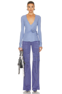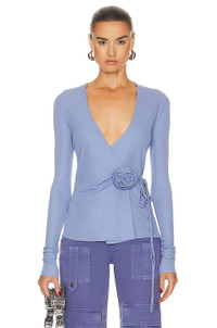 Details - 100% viscose - Made in Italy - Dry clean only - Open front with wrap tie closure - Rosette appliqué detail - Our Style No. BMAF-WS72 - Manufacturer Style No. A322C239A