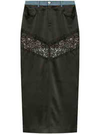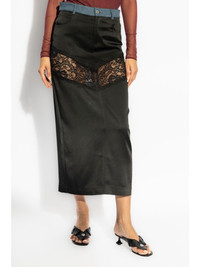 long straight skirt with lace insert Highlights - Black - Satin finish - Lace detailing - Pencil design - Central rear vent - Denim trim - Ankle-length - Front button and zip fastening - Classic five pockets Made in Italy Composition Acetate 71%, Viscose 27%, Spandex/Elastane 2%