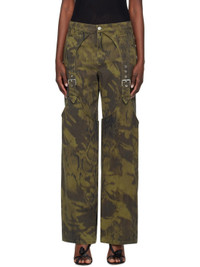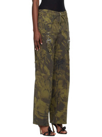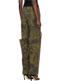 Wide-leg paneled stretch denim and semi-sheer viscose georgette trousers. Graphic pattern printed throughout. · Belt loops · Five-pocket styling · Zip-fly · Frayed edges at overlong legs · Logo embroidered at back waistband · Logo-engraved silver-tone hardware Supplier color: Military/Dark