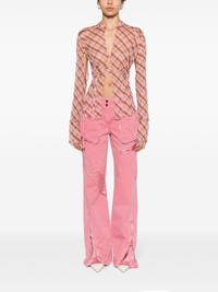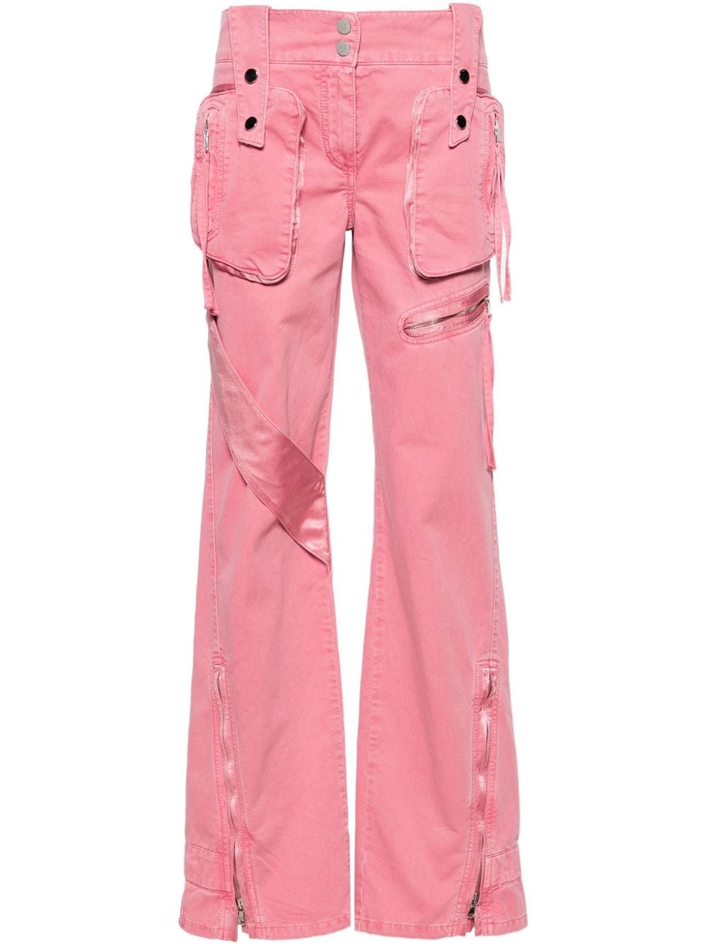 low-rise cargo trousers Highlights - Bubblegum pink - Cotton - Twill weave - Satin inserts - Strap detailing - Low-rise - Belt loops - Front press-stud and zip fastening - Two side cargo pockets - Two side zip-fastening pockets - Straight leg - Press-stud and zip ankles Imported Composition Viscose 100%, Cotton 100% SIZE & FIT Model measurements Height 5 ft 10 in(1.77 m) Bust/Chest 32.28 in(82 cm) Hips 34.64 in(88 cm) Waist 24.01 in(61 cm) FittingInformation Designed for a straight-leg fit, these trousers allow for a close fit at the waist and an unrestricted, comfortable fit over the leg The zipped hems allow you to adjust the fit throughout the calves and ankles Made from a midweight non-stretch fabric This piece fits true to size – take your usual size